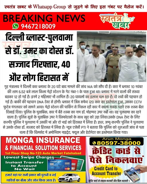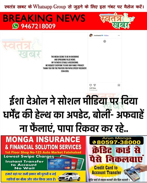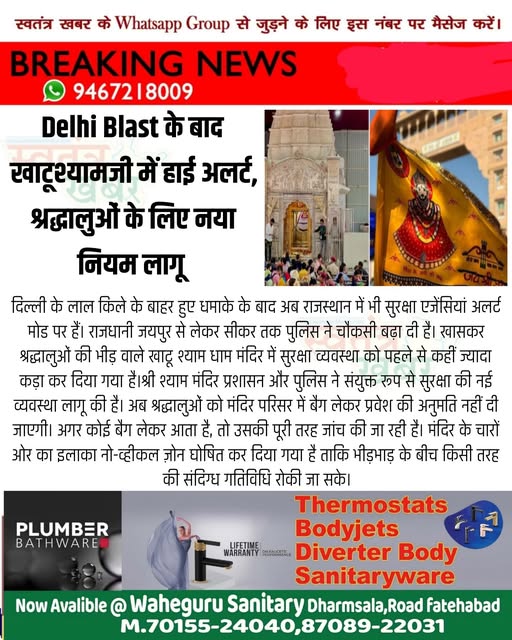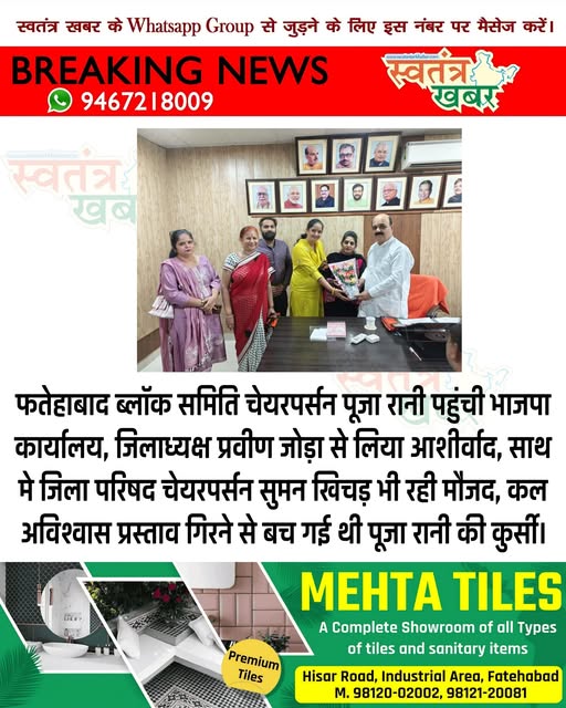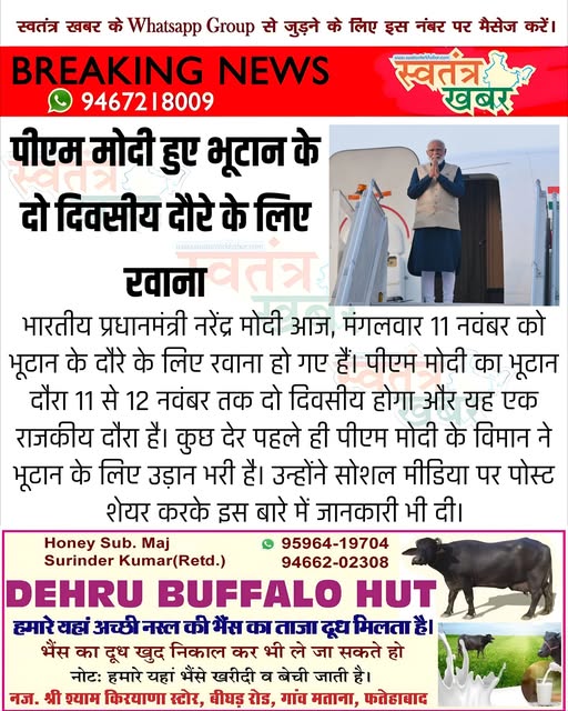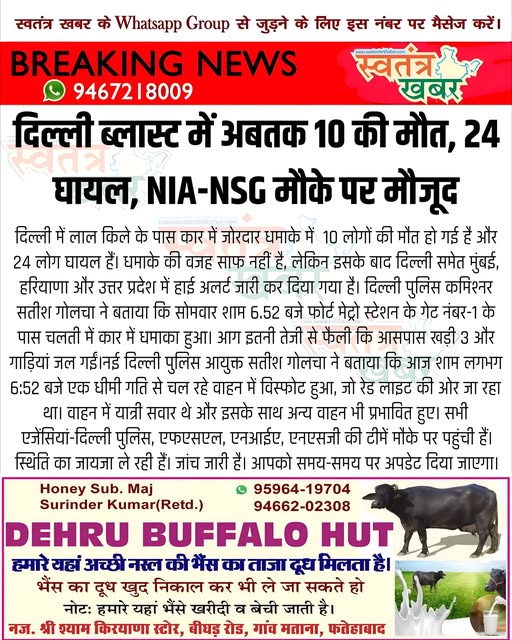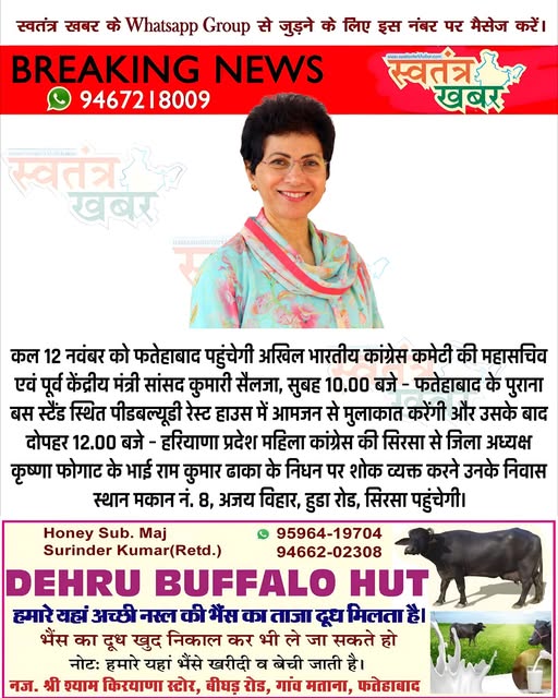 सच्ची और निष्पक्ष खबरो के लिए फॉलो करे व्हाट्सएप ग्रुप में जुड़ने के लिए मैसेज करें.. 9467218009