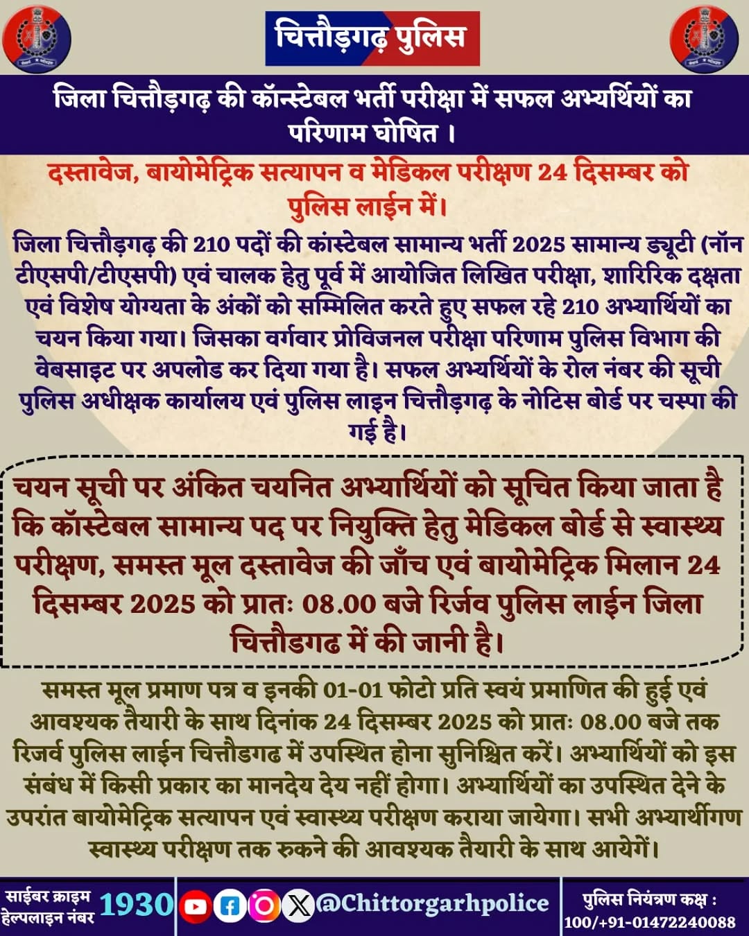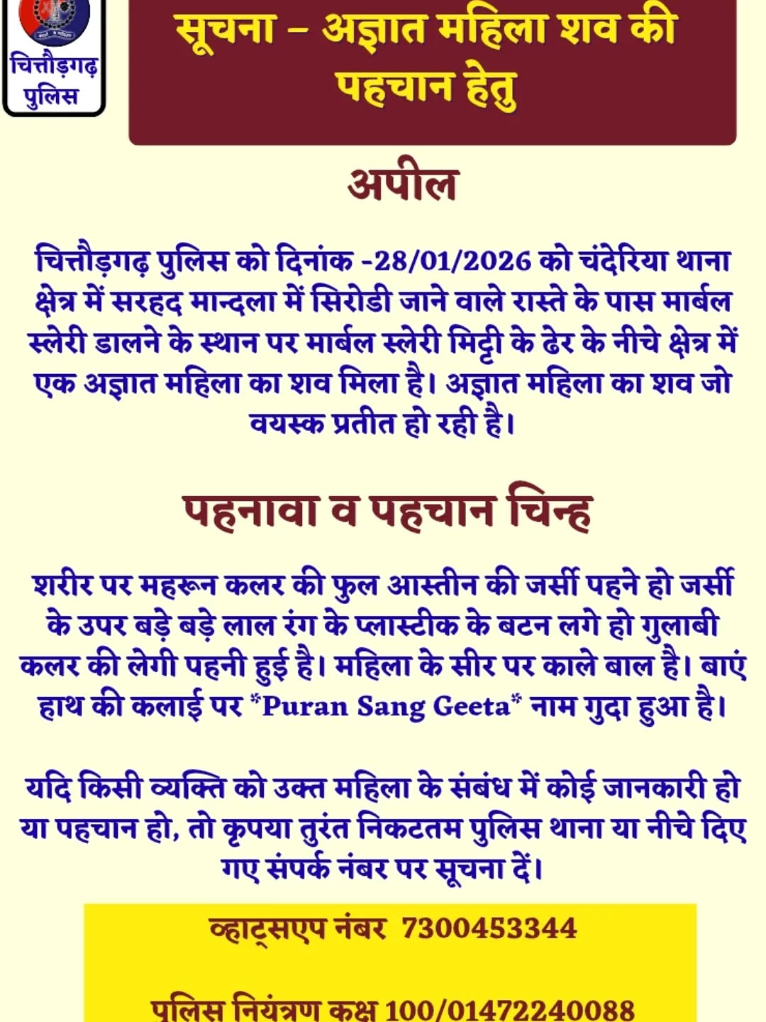 OFFICIAL ACCOUNT OF CHITTORGARH POLICE