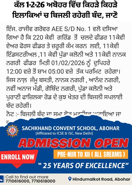 अबोहर की खबरें सबसे पहले जानने के लिए Udyan Xpress को फॉलो करें