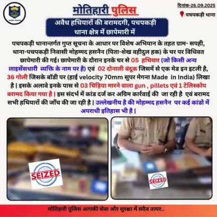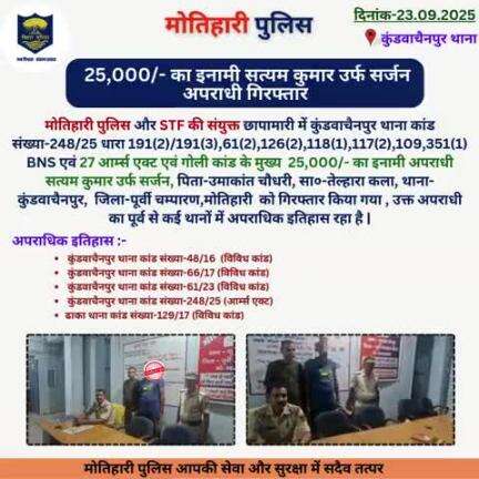 मोतिहारी पुलिस की आधिकारिक प्रोफाइल पर आपका स्वागत है!