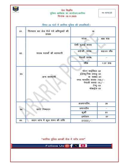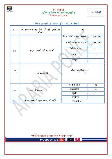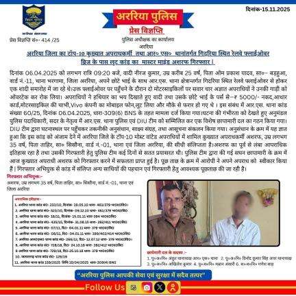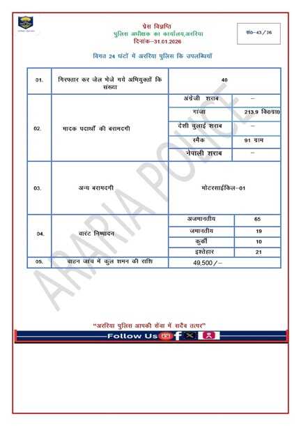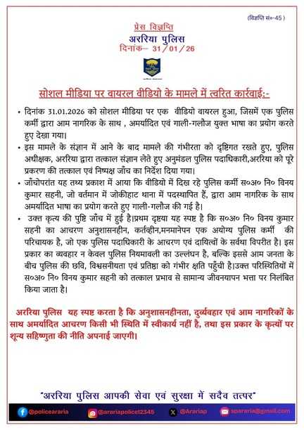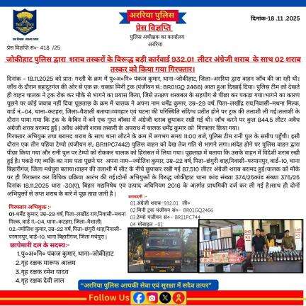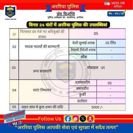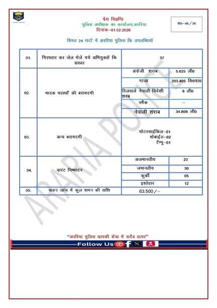 अररिया पुलिस के आधिकारिक प्रोफाइल पर आपका स्वागत है