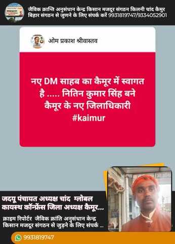 ग्लोबल कायस्थ कॉन्फ्रेंस जिला अध्यक्ष कैमूर बिहार। जैविक क्रान्ति अनुसंधान केन्द्रकिसानमजदूर संगठ