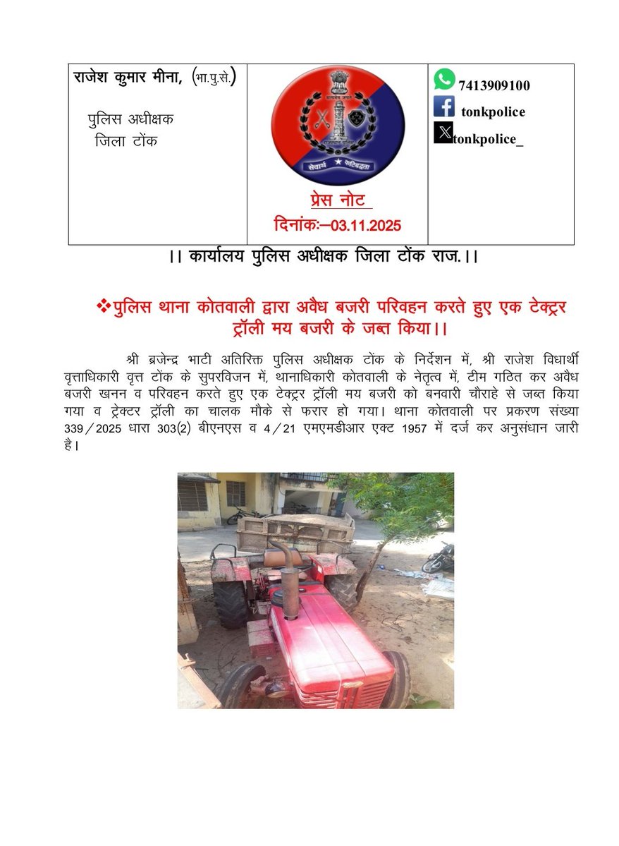 OFFICIAL ACCOUNT OF TONK POLICE