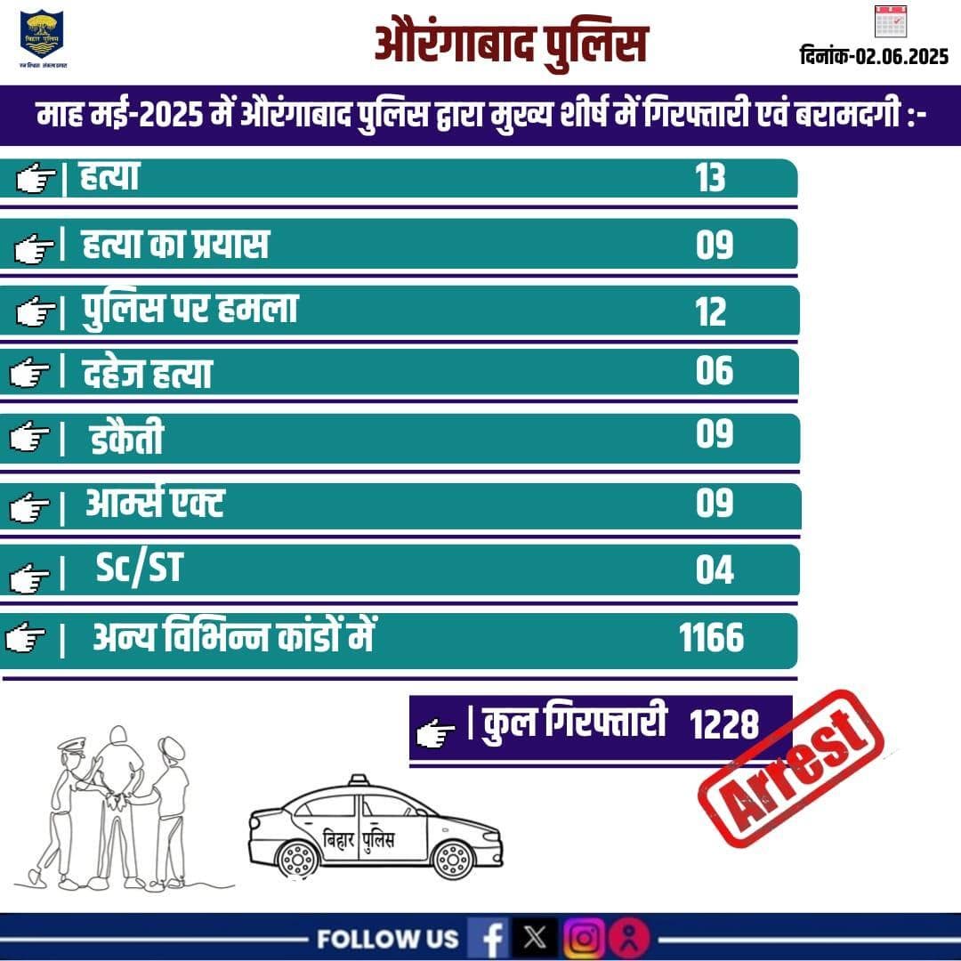 मई माह-2025 में औरंगाबाद पुलिस द्वारा मुख्य शीर्ष में गिरफ्तारी एवं बरामदगी... . . #HainTaiyarHum #aurangabadpolice