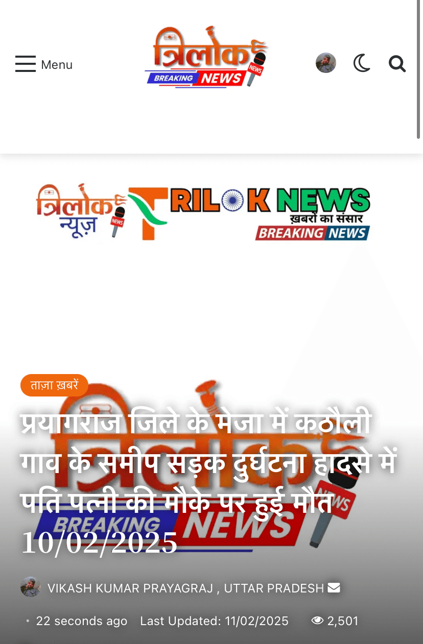 मेजा के कठौली गाव के समीप सड़क दुर्घटना में पति पत्नी की मौके पर हुई मौत 10/02/2025 - Meja News