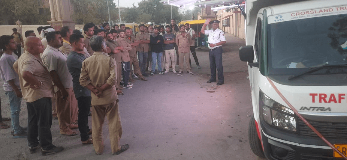 यातायात शिक्षा टीम द्वारा राईका बाग रेलवे स्टेशन के बाहर, आमजन एवं वाहन चालकों हेतु"यातायात शिक्षा एवं जागरूकता कार्यक्रम" का आयोजन किया गया। - Jodhpur News