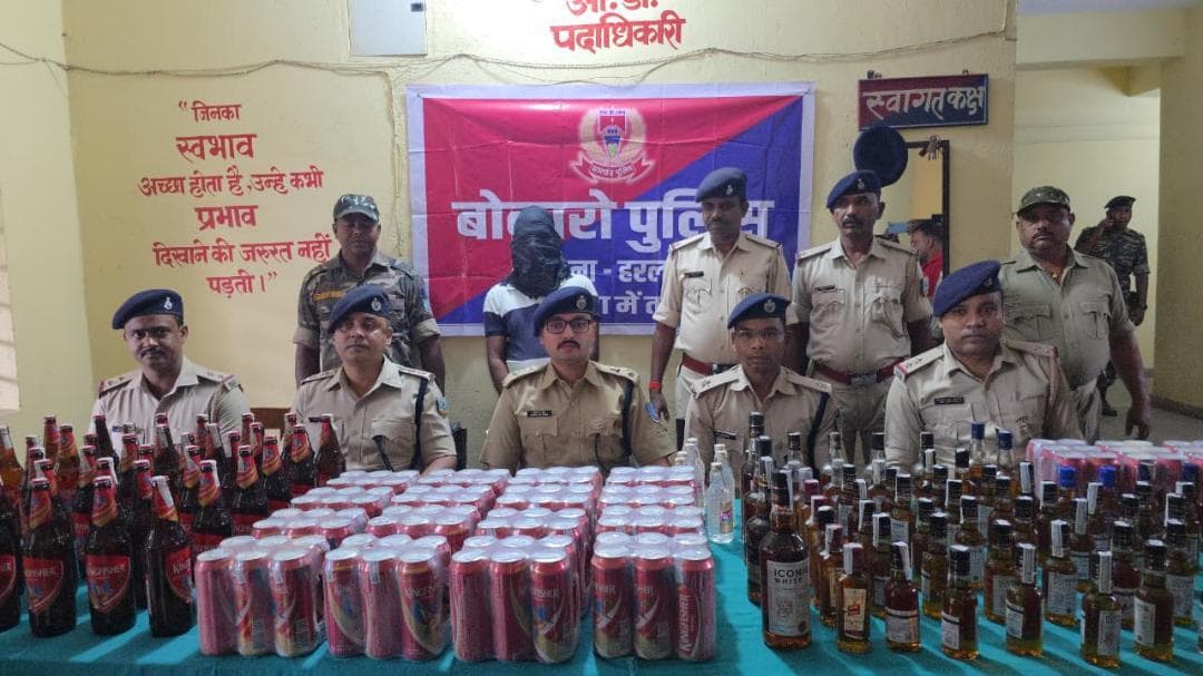 हरला थानांतर्गत राजेंद्र मोड स्थित झोपड़ी से भारी मात्रा में अवैध शराब को बरामद करते हुए एक व्यक्ति को गिरफ्तार किया गया। - Bokaro News