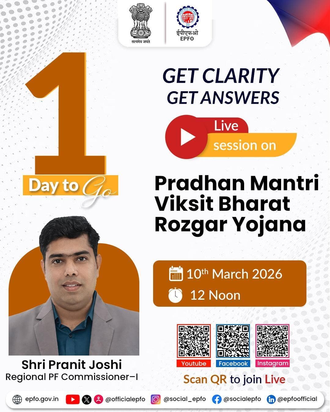 ⏳ Just 1 Day Left! Get clarity on Pradhan Mantri Viksit Bharat Rozgar Yojana. Join us LIVE tomorrow at 12 Noon.