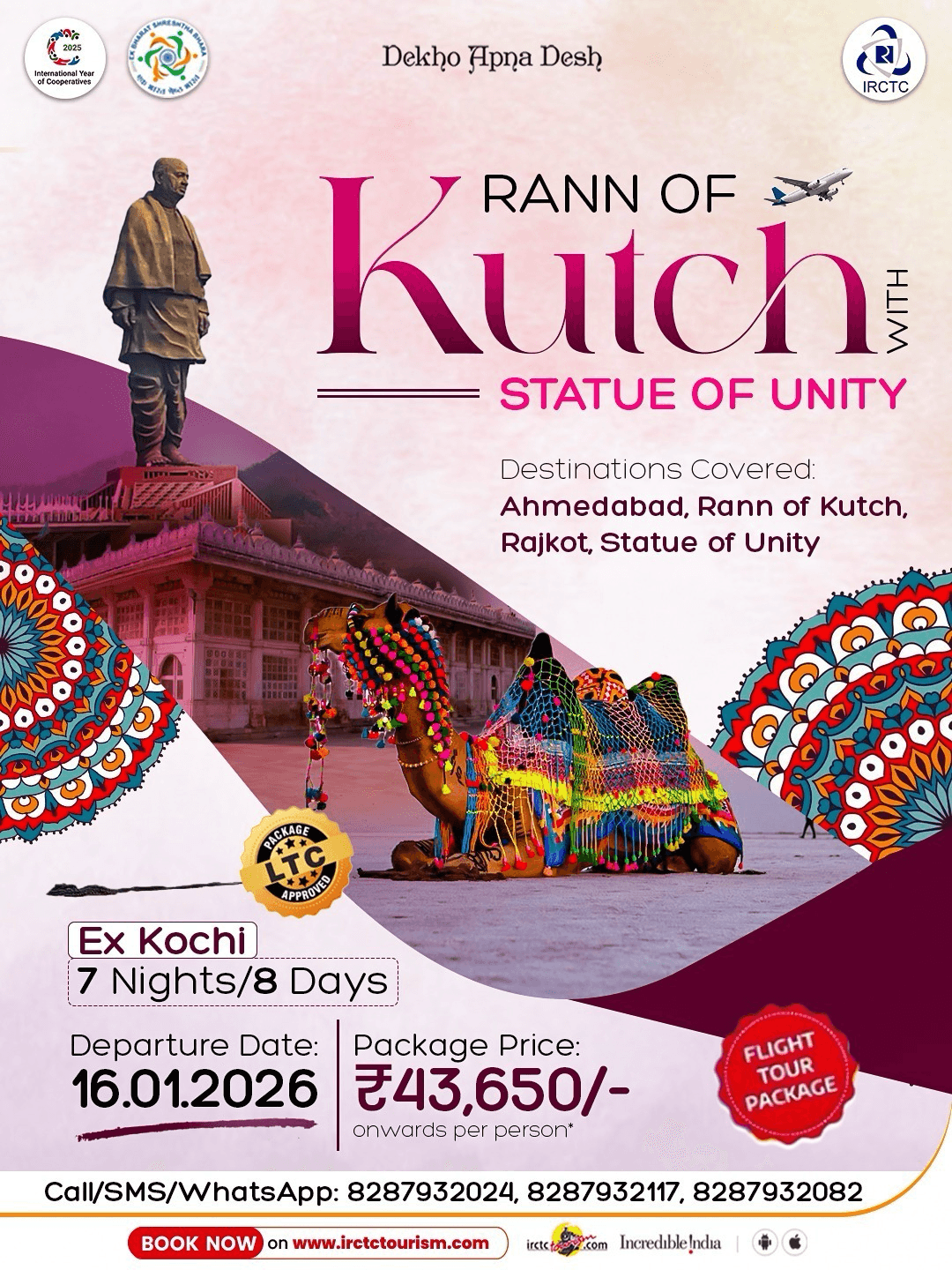 Fly into Gujarat’s vibrant charm with IRCTC’s Rann of Kutch with Statue of Unity tour. Book now! (packageCode=SEA07)