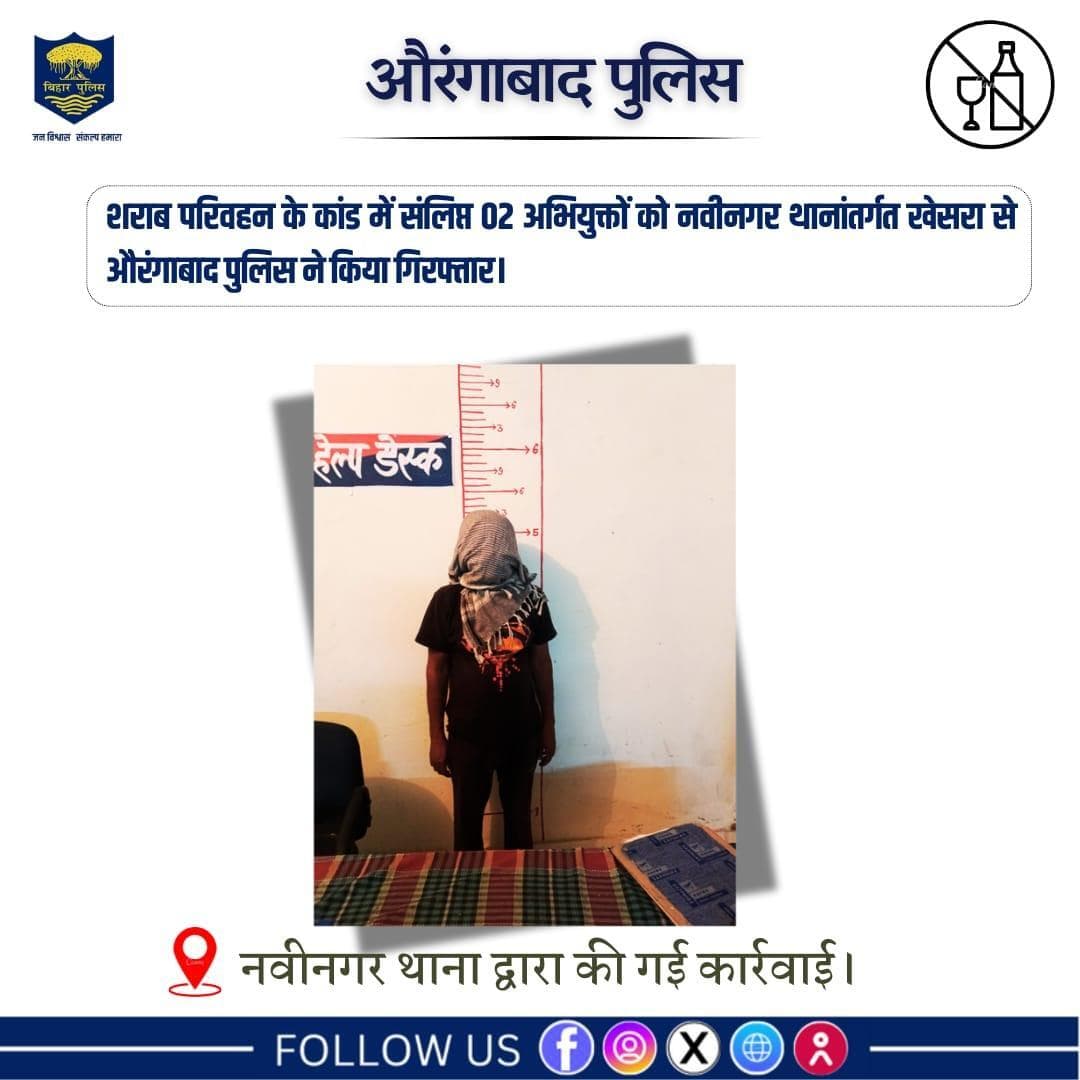 शराब परिवहन के कांड में संलिप्त 02 अभियुक्तों को नवीनगर थानांतर्गत खेसरा से औरंगाबाद पुलिस ने किया गिरफ्तार। - Aurangabad News