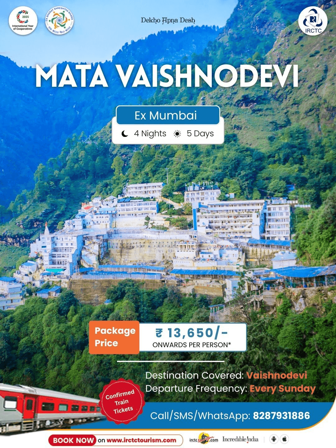 Discover a tranquil pilgrimage to Mata Vaishnodevi with IRCTC. Reserve your holy journey today! (packageCode=WMR175) - Delhi News
