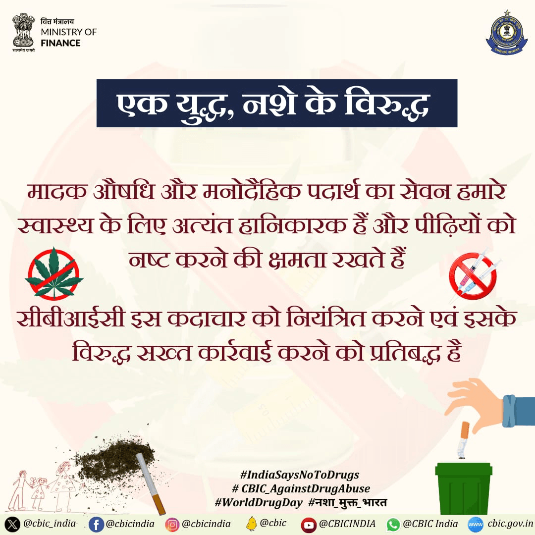 #IndiaSayNoToDrugs #WorldDrugDay #CBIC_AgainstDrugAbuse #नशा_मुक्त_भारत