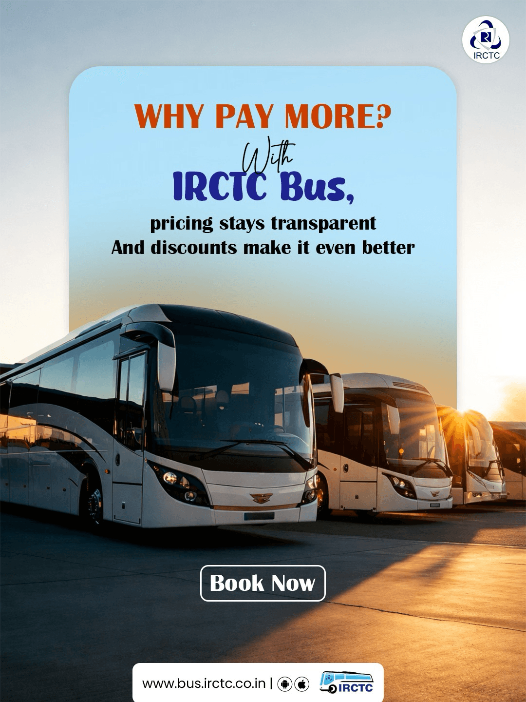Switch to IRCTC Bus for transparent fares you can trust. Book your seat today: www.bus.irctc.co.in