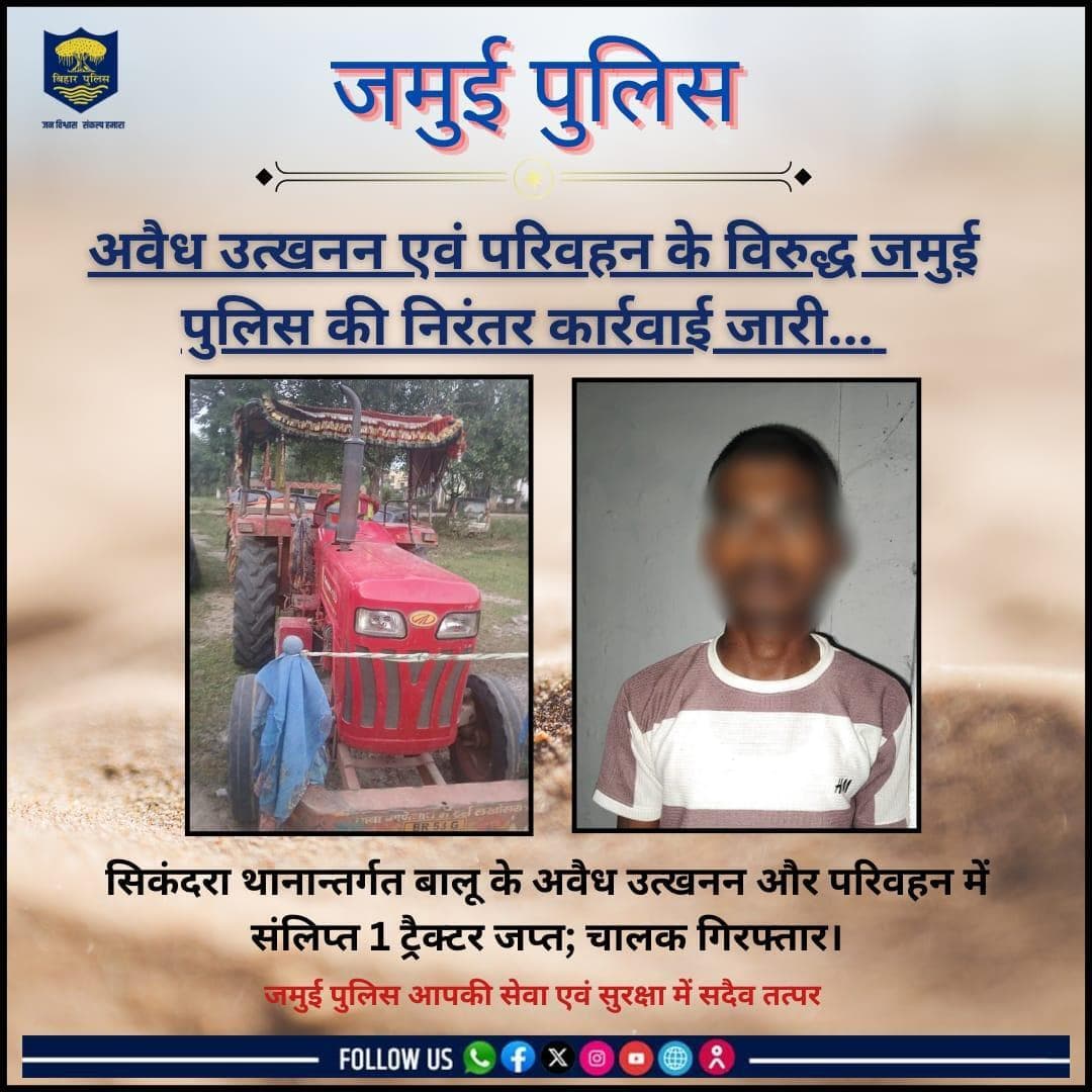 अवैध उत्खनन एवं परिवहन के विरुद्ध जमुई पुलिस की निरंतर कार्रवाई जारी.. - Jamui News