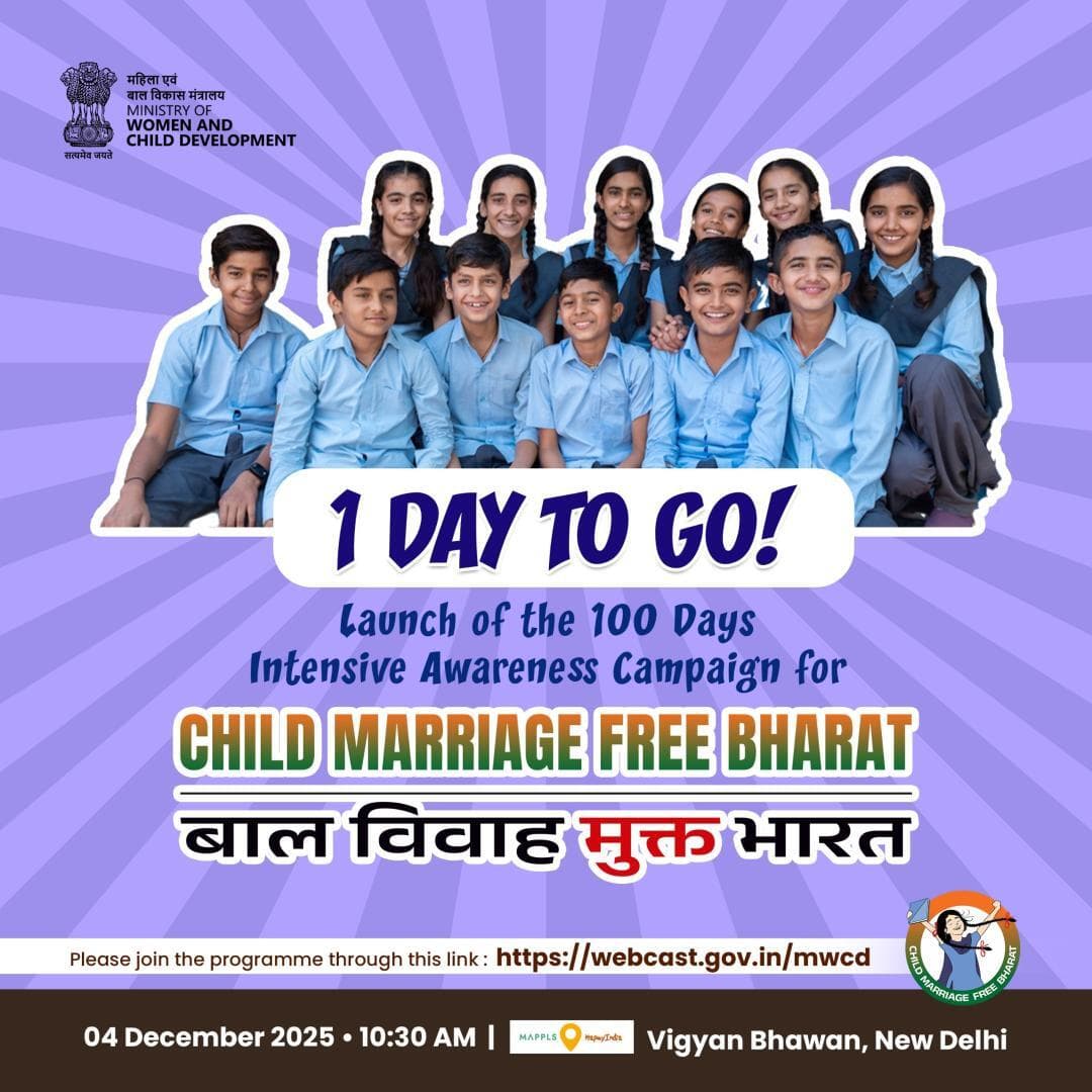 The 100 Days Intensive Awareness Campaign will be launched. Join the programme live: https://webcast.gov.in/mwcd