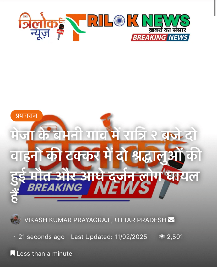 मेजा के बभनी गाव में रात २ बजे दो वाहनो की टक्कर में २ श्रद्धालुओं की हुई मौत आधे दर्जन लोग घायल हो गए ! - Meja News