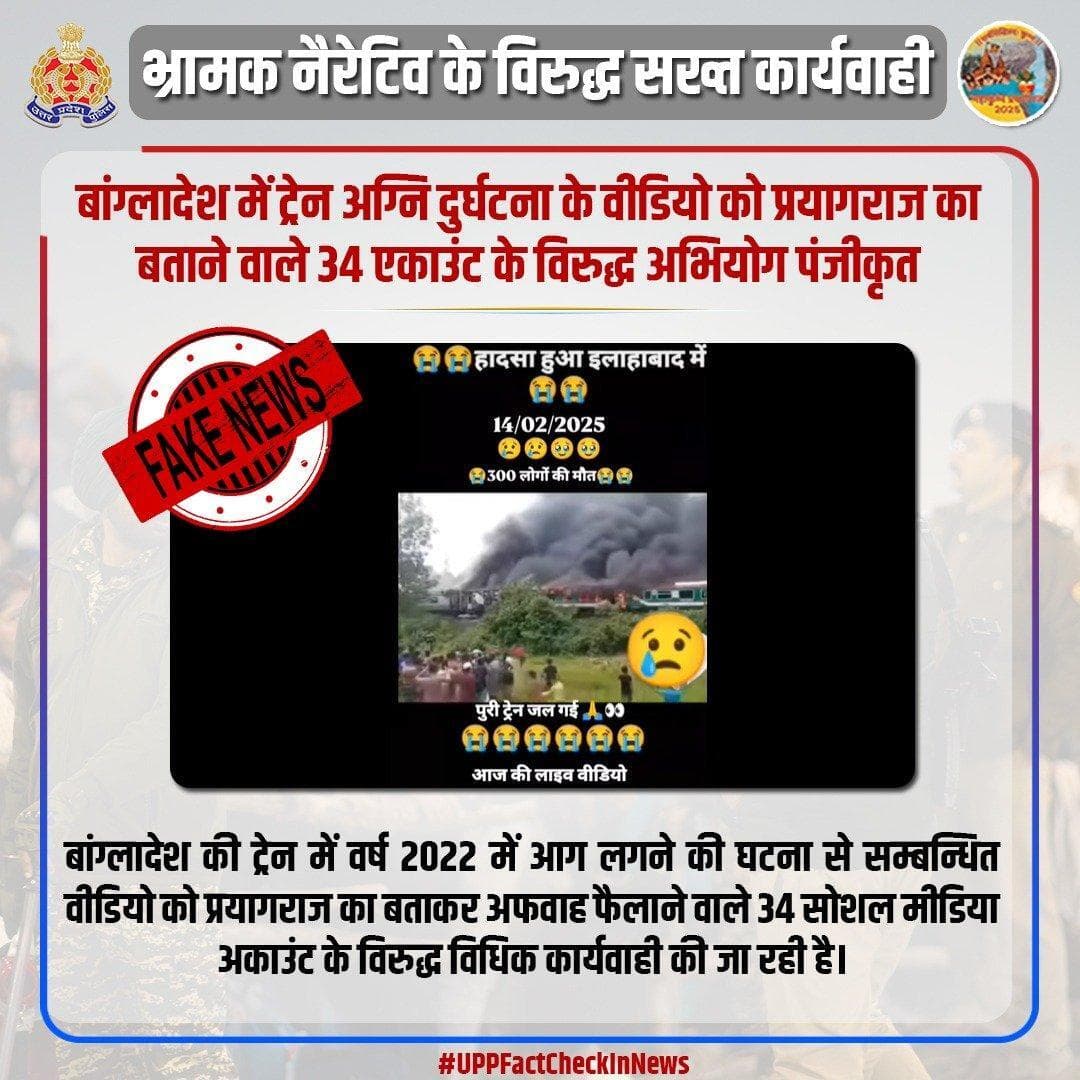 बांग्लादेश की ट्रेन में आग लगने की घटना के वीडियो को MahaKumbh का बताकर अफवाह फैलाने वाले 34 अकाउंट के विरुद्ध FIR - Uttar Pradesh News