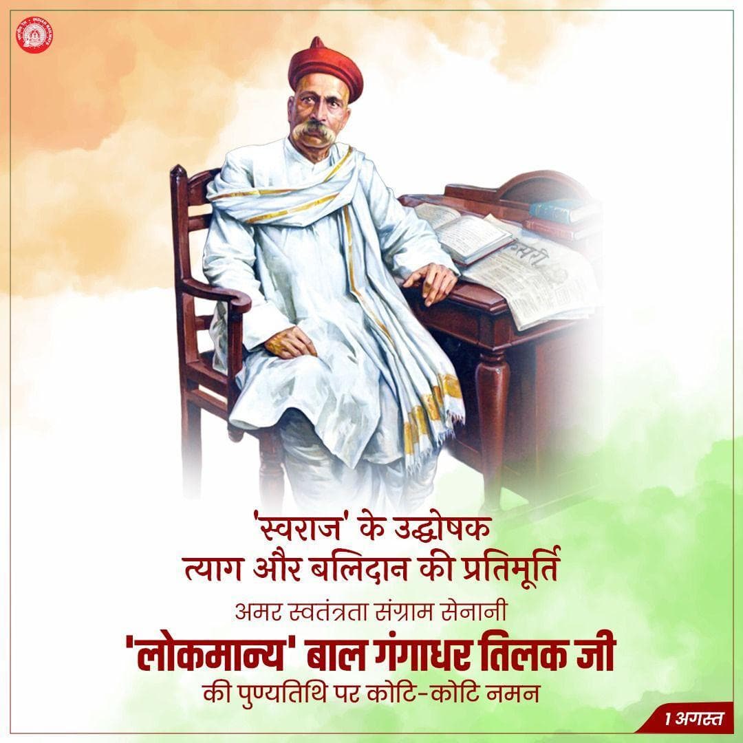 स्वतंत्रता सेनानी और समाज सुधारक ‘लोकमान्य’ बाल गंगाधर तिलक जी की पुण्यतिथि पर भारतीय रेल की ओर से भावपूर्ण श्रद्धांजलि।