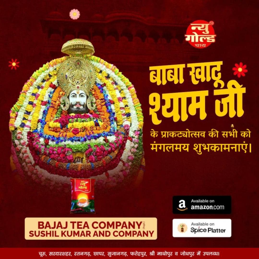 #KhatushyamJi #KhatushyamDarshan #NewGoldChai #BajajTea #RajasthaniTaste #DesiChai #Sardarshahar #Churu #Ratangarh #Chhapar #Sujangarh #Bissau #RajasthanTea #PremiumTea