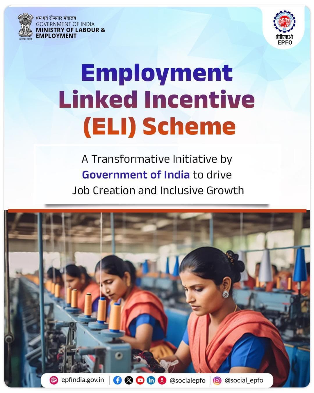 Employment Linked Incentive (ELI) Scheme Read full PIB Press Release: 🔗 pib.gov.in/PressReleasePage.aspx?PRID=2141129