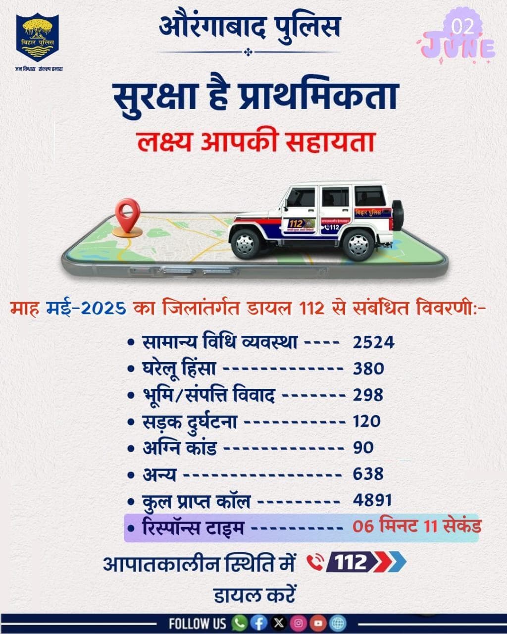 माह मई-2025 में डायल 112 द्वारा की गई त्वरित कार्रवाई से संबंधित विवरणी- . . #HainTaiyarHum #BiharPolice