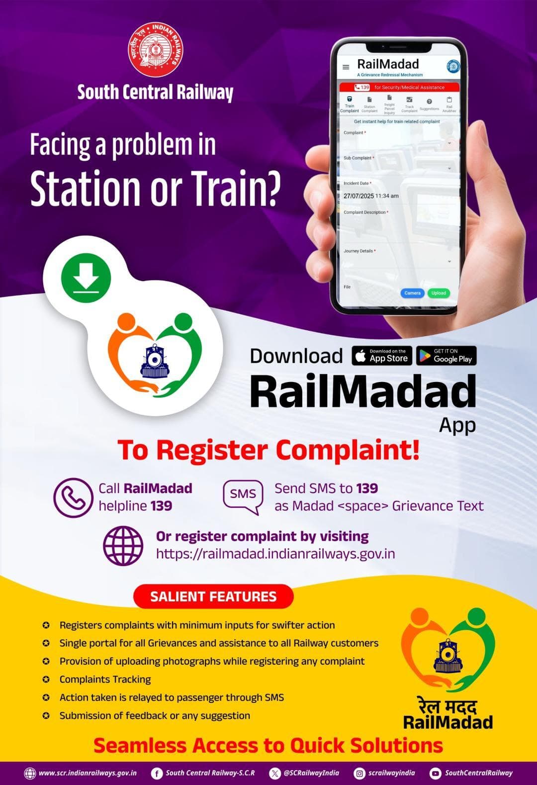 Download RailMadad App / call helpline number 139 to register a complaint! 📢 #railmadad #indianrailways @RailMinIndia - Hyderabad News