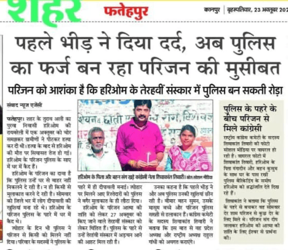 कांग्रेस नेता शिवाकांत तिवारी ने कहा 27 को हरिओम बाल्मीकि को श्रद्धांजलि सभा मे उपस्थिति होंगे - Fatehpur News